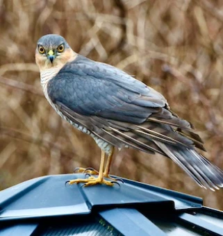 There are not many times when you get the chance to photograph a Sparrowhawk on a hot-tub! This male failed to catch so he perched, momentarily, on next doors hot-tub