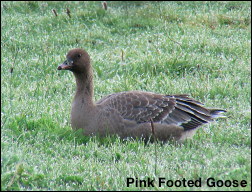 During the evening of the sixth Pink Footed Geese called from the darkened sky. The following morning, below some pylons, was a Pink Footed Goose with a broken leg presumably having hit the overhead wires the night before. Whilst it sat on the ground it still fed all around it and several hours later it had gone, so lets hope it flew off on its own accord and was not taken by a Fox.