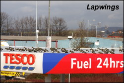 This photo shows part of a flock of one hundred and forty Lapwings that spent several hours on the roof of Tesco’s petrol station in Oldham. They are normally on