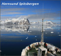 I have just returned from a ten day cruise of the Spitsbergen fiords and the photo shows our boat entering Hornsund on the most perfect Arctic day you could ever